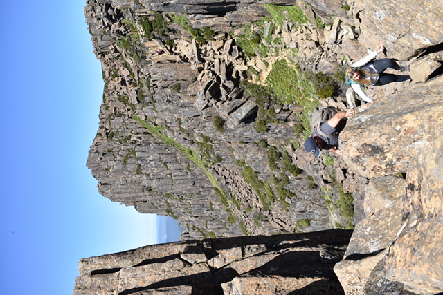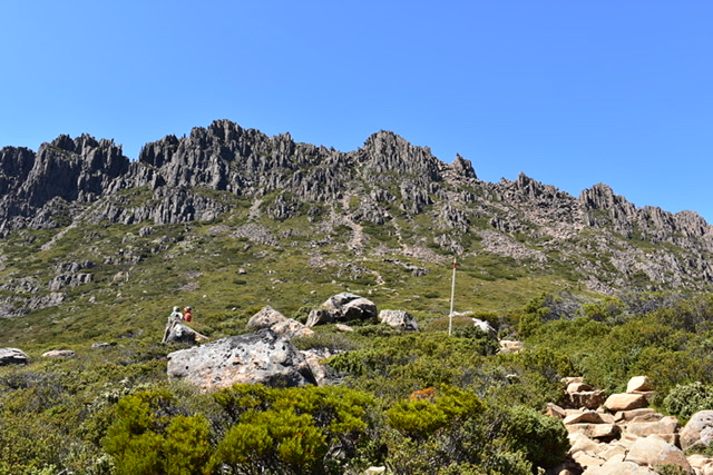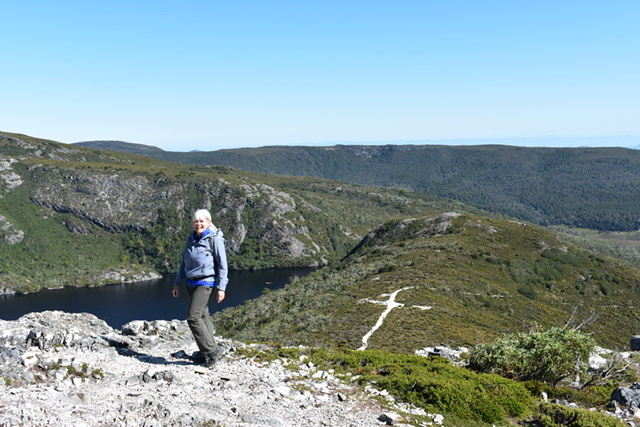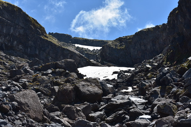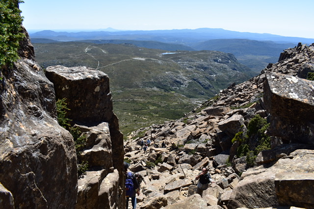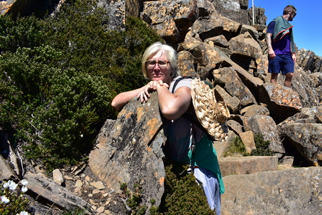 After my brief lunch stop I decided to walk a bit of the summit, but the route quickly went across big rocks and loose stones. I had my walking poles and did go a little distance but decided to go back down knowing it would be more difficult going down (no problem going up as I love bouldering/scrambling – great exercise) and, being on my own, would be foolish should I fall and injure myself. I appear to be getting more sensible with age!