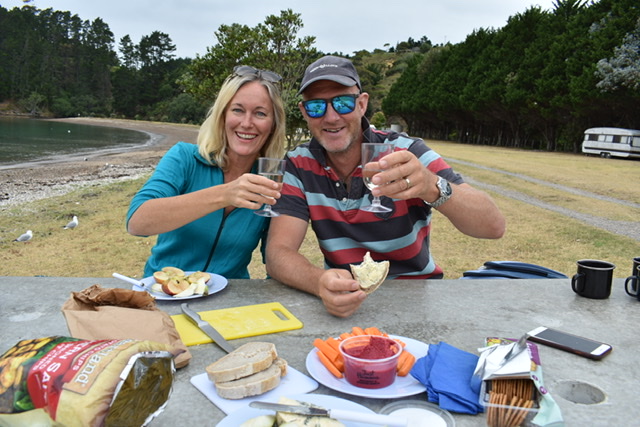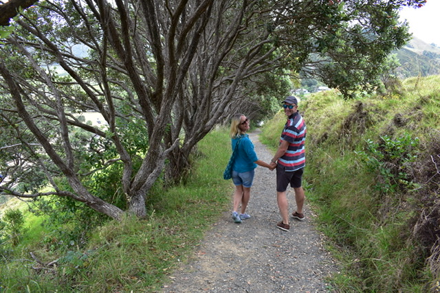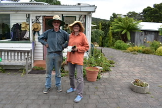 I rushed off in order to get to Lil and John’s (the couple I met at the East Cape Lighthouse) as I’d received a text from them reminding me I was still invited to stay or pop in. They live in Papamoa, just near Tauranga, so it was on my way. They have a lovely house with large grounds and lots of fruit trees, in fact Lil was collecting plums when I arrived. Their daughter and children live in the house next door and Lil had told me that often one of them would sneak in their house early morning and get into bed with them, which was a pleasure.