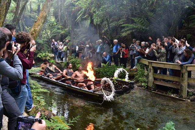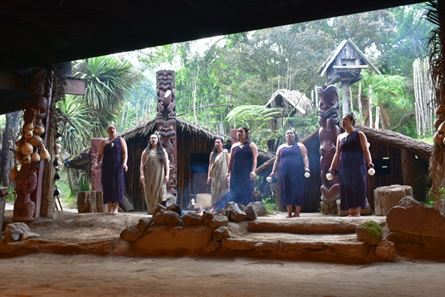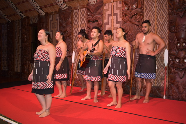 I went to Mitai Maori Village, a reconstructed Maori village, for a cultural evening that I’d promised myself to go to as had been told Rotorua was the best place to do this. It started at 6.30pm and there were 150 people booked, which included a group of very young children from a Maori speaking school. Apparently, some years ago any child speaking Maori in class was punished with the cane! There has, in recent years, been a big move towards encouraging the Maori language and culture and I have certainly noticed the change since my first visit all those years ago. This can only be a good thing.