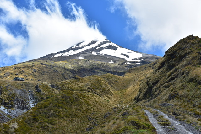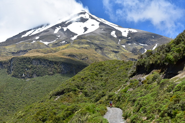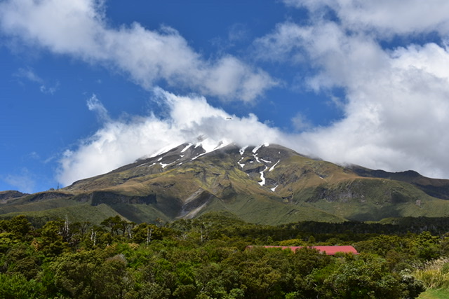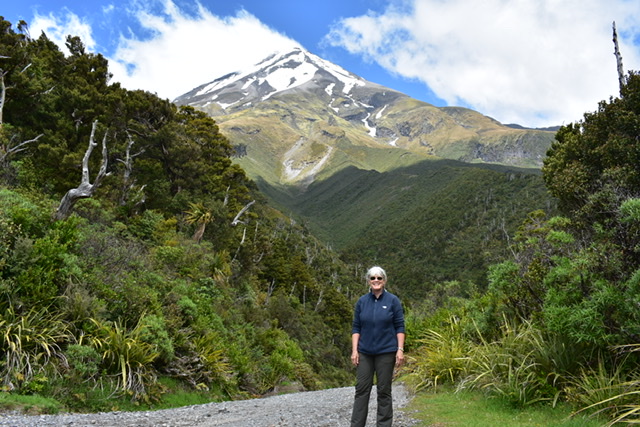 About 29km from New Plymouth, and back in the direction I’d travelled, is Egmont National Park, the star of which is Mount Taranaki (Mount Egmont). The summit (2518m) can be walked up (although I read that February – April was the best time for this) which takes 8-10 hours but there are also a lot of shorter walks, so I planned to get advice. On Friday 6th, I had a leisurely breakfast, chatting to Jerene, and didn’t get to the Information Centre until 11am. I was advised to take one route up (Tahurangi Translator Rd) do a bit of the summit and to come down the Holly Hut Track.