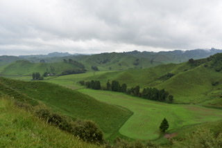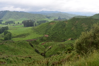 There were 4 saddles (Tahora, Whangamomona, Pohukura – named after a prominent Maori chief, and Strathmore) along the route which were lovely to drive around despite the rain, and there were hardly any other cars so I could drive leisurely. I did manage to get a couple of photos of the lovely countryside in between bouts of rain: