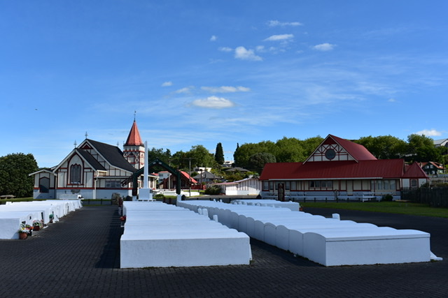 Whilst walking into the centre I came across Ohinemutu, a living Maori village home to the Ngati Whakaue iwi (tribe) where tours had been available earlier. The tribe chose the location for its lakeside setting and abundant geothermal energy used for cooking, bathing and heating. There was a Church, marae (meeting house) and other buildings. Ohinemutu became the main centre for the Rotorua region in the early 1870s. Visitors arrived at this once bustling settlement before experiencing the healing waters of Rotorua.