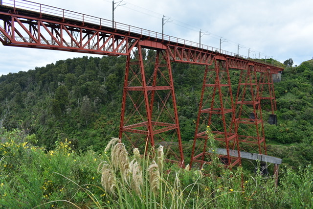 Another lovely drive, despite the accompaniment of rain all the way, but soon into it I stopped to look at the Makatote Viaduct which straddled the river of the same name high above it. Prior to its construction the Central Plateau was closed off to European settlement and its resources and landscape relatively untouched. The viaduct proved to be a vital link for the local and national economy, with a significant amount of passengers and freight transported across it which encouraged immigration with the employment opportunities it provided and establishing settlements in the area. The viaduct was built from 1905-1908, is 262 metres long, 79 metres high (the 3rd highest rail bridge in NZ) and was designed by Peter Seton Hay (1853-1907).