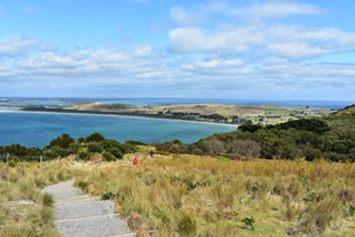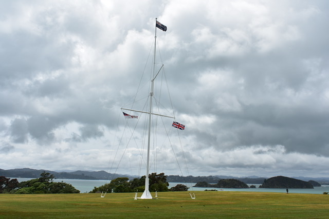 I then walked to Flagstaff Historic Reserve which was up a steep road. It was here that, in 1834, the influential Ngapuhi (local tribe) Chief, Hone Heke, presented a flagstaff to the British Resident at Waitangi, James Busby, which was to fly NZ’s first flag: the Flag of the United Tribes. Eleven years later the flagstaff became the focus of protest and fighting between Maori and British and was chopped down 4 times by Hone Heke. There were more good views over Russell and across the bay to Paihia with a mostly woodland walk back down to the town.