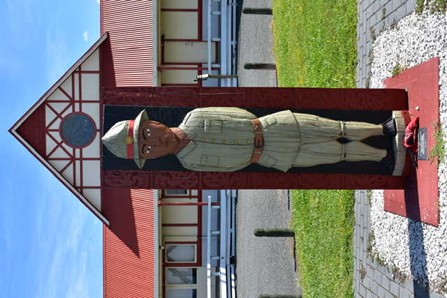 I then went to the Museum which, although small, was very good with the usual Maori artefacts and a 5th size model of ‘Endeavour’. After that was Christ Church, NZ’s oldest church (Anglican) which was built in 1835. I enjoyed wandering around the graveyard where some early settlers, sailors and whalers were buried and memorials to Maori people of note….
