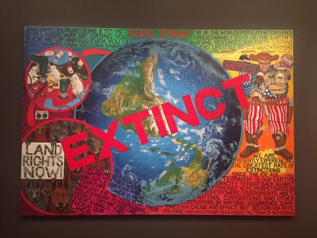 I had an extremely enjoyable few hours in the art gallery: the Art Gallery of South Australia to give it its correct title. Each room was themed which incorporated a mix of old and new art, indigenous, Australian and European. There were a few Rodin sculptures and a Barbara Hepworth. I was surprised to see a man reading aloud in one room and it turned out he was Mike Parr, a leading artist whose work includes performance, drawings, print, sculpture and photographs. On this occasion he was on the first day of a six-day duration reading, testing the limits of his voice, stamina and body. He was reading the same page over and over. I had to ask myself, why?! and it got very tedious, I could almost recite it myself: