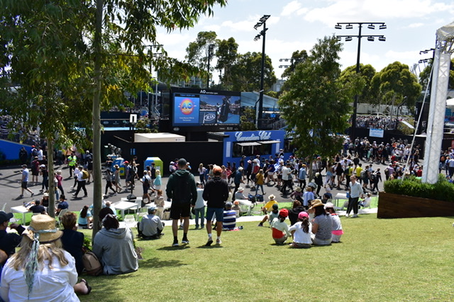 l-r: waiting for the concert, the Oval from the concert grounds and Tim Minchin in full flow