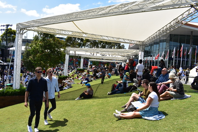 All these events had been really interesting but after the last one I popped over the road to see if a queue had started forming for the Tim Minchin concert. It had, but there were only 3 people in it so I decided to join them and sat in the shade with a young woman called Megan Doherty. It was only about 2.30pm and the concert was due to start at 8pm with gates opening 4 or 5pm. I got talking to Megan who was a musical theatre actress so we discussed the shows she’d been in and I told her some of the shows the Cotswold Savoyards had done. It turned out she loved Gilbert and Sullivan and was very familiar with Sondheim and many other shows the Savs’ had staged. She did her degree at Ballarat, apparently a good place for theatre and the arts and somewhere I’ve been recommended to visit before.