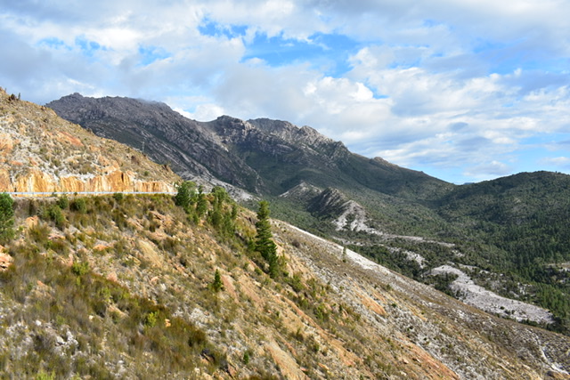 Part of the route took me onto a road that had a sign saying ‘Closed Ahead’. As google maps didn’t agree with that, sending me along it regardless, I thought I’d chance it. It was quite a narrow road and went through what would have been quite spectacular scenery had the weather been better, so sadly no photo stops. There were branches to avoid in the road, the occasional speeding car behind and towards me not driving to the conditions, and at one point some trees leaning at 45 degrees across the road which looked as if they might come crashing down onto the car. That road wended its way for 26km until it came to a T-junction which is where the road appeared to be closed, but fortunately to the right turn and I was travelling left.