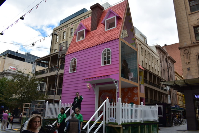 Friday 28th I decided to go to the Art Gallery. As I walked along Rundle Street (one of the main central shopping streets) I noticed that a large ‘Dolls’ House’ that was being constructed on Wednesday and part of the Arts Festival was now open and there was a small queue. I went in but wasn’t overly impressed, but guess it’s different and might appeal more to children: