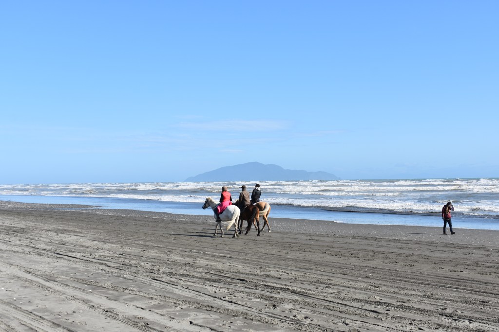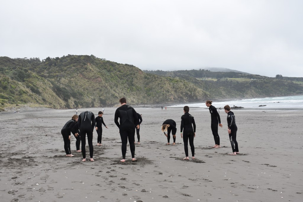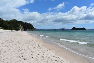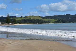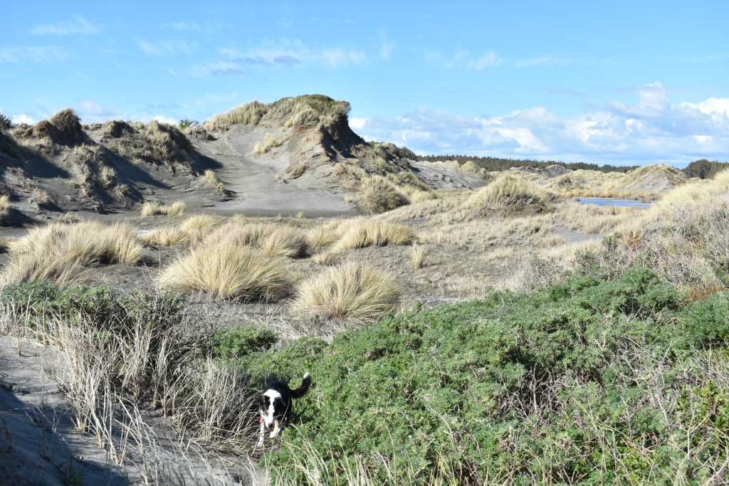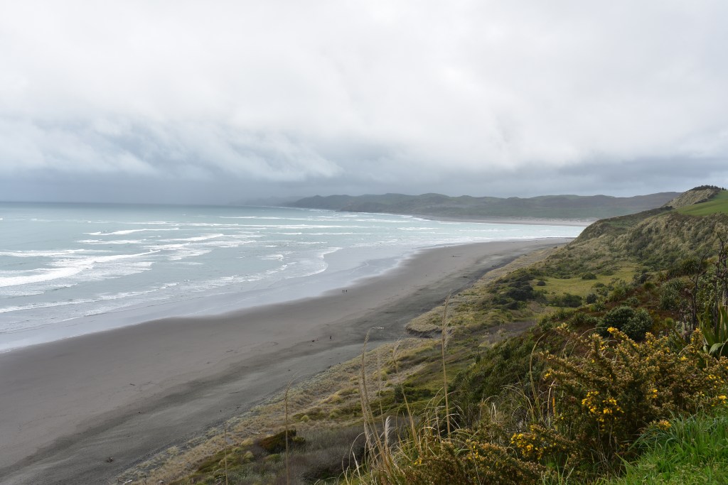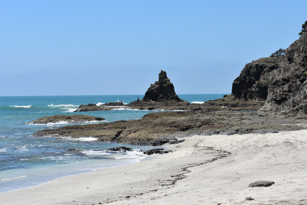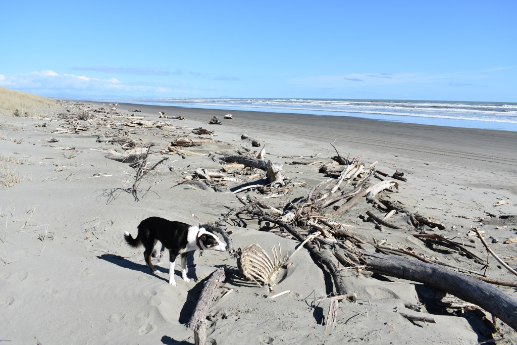 After dropping off my bags and filling the fridge I went to investigate the beach, about 200 yards from the studio. I’d noticed signs saying it was voted NZ’s most loved beach. If that’s true I could see why as it offers ‘the walker, bather, surfie or fisherman 11 kms of uninterrupted white Pacific beach sand’. It was pretty empty, being working hours still, but there was a father with four young children, teaching and encouraging the older two to surf while their mum took videos and photos. It was lovely to see.