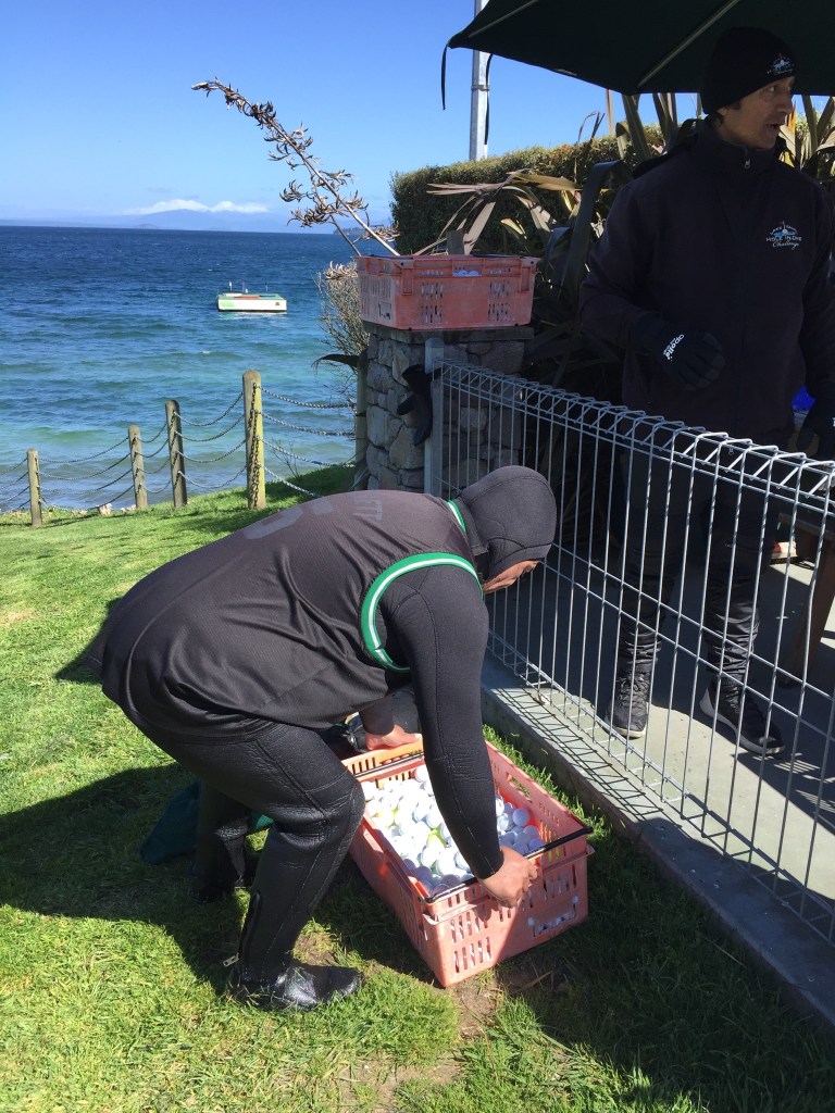 I decided to walk in a westerly direction from about the middle of the beach right to the end, known as West End, surprisingly! On the way more people came to the beach, some with dogs, the odd surfer (not big waves today so good for novices I imagine), couples and friends just enjoying a stroll in the lovely warm weather. I came across a couple (Kerry – male and Lea – female) with a machine called a fish harvester that was letting out a length of fishing line. I stopped to ask them about it. They told me the line went out electronically and had been set to unroll for 20 minutes. NZ law allows no more than 25 hooks with bait and they’re allowed 8 fish each, so if they caught any more they’d have to put them back. Once the 20 minutes was up they were leaving it for an hour while they went back to their house, overlooking the beach, for dinner and would return to reel it in and see what they’d caught. I told them I’d be interested to see and they invited me to call on them at their home and suggested I might even get a glass of wine. I left them and decided I would take them up on their offer.