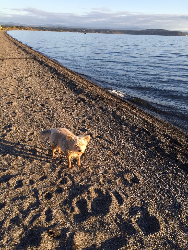 I decided to walk back to the cabin and spotted a woman with a Jack Russell. I got level with her and she asked if I was travelling and we got chatting. Her name was Maria and she told me that she was nearly 65, that 18 months ago she’d decided to sell her house, most of her belongings, pack her car and take off around NZ not knowing where she’d go. She said it was the best thing she’d ever done and was really happy. She was staying in the backpackers of the Tolaga Bay Inn, had initially meant to stay for 2 nights but was still there 2 and a half months later, but leaving the next day not knowing where! I felt she was a kindred spirit. She had no children, although told me she’d miscarried a girl when she was 19 and a boy when she was 42, and never married. She had bundles of energy and had been walking the landlord’s dog, Roxy, morning and evening and was going to miss her.