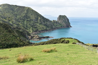 I continued with the lovely drive, circuitous and really scenic and arrived at Waihau Bay Lodge, which looked lovely on the outside, where I was staying the night in a budget room. The lodge looked lovely from the outside but when I was shown my room my heart sank. It absolutely stank, the windows not having been opened to air it. There was one very soft king size bed and two single beds. The only other items of furniture were a mirror in a corner and a big, dusty old fashioned TV taking pride of place in the room which didn’t work anyway. There was a kitchen which could be used and that also stank of fish, with a rusty old empty (defrosted) chest freezer in the corner. There were two toasters but no kettle so when I asked for one was given a pan to boil the water.