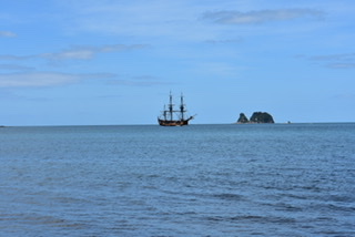 I walked back down and followed the Heritage Walk, all to do with the Maoris who first lived in the area and the landing of James Cook, who named the area Poverty Bay as he couldn’t get the supplies he required here. It was another very hot day today so I stopped off for a drink by the harbour and wrote a few Christmas cards. Then crossed the river to walk along the side of the town beach, then to a few Opp shops before they closed.