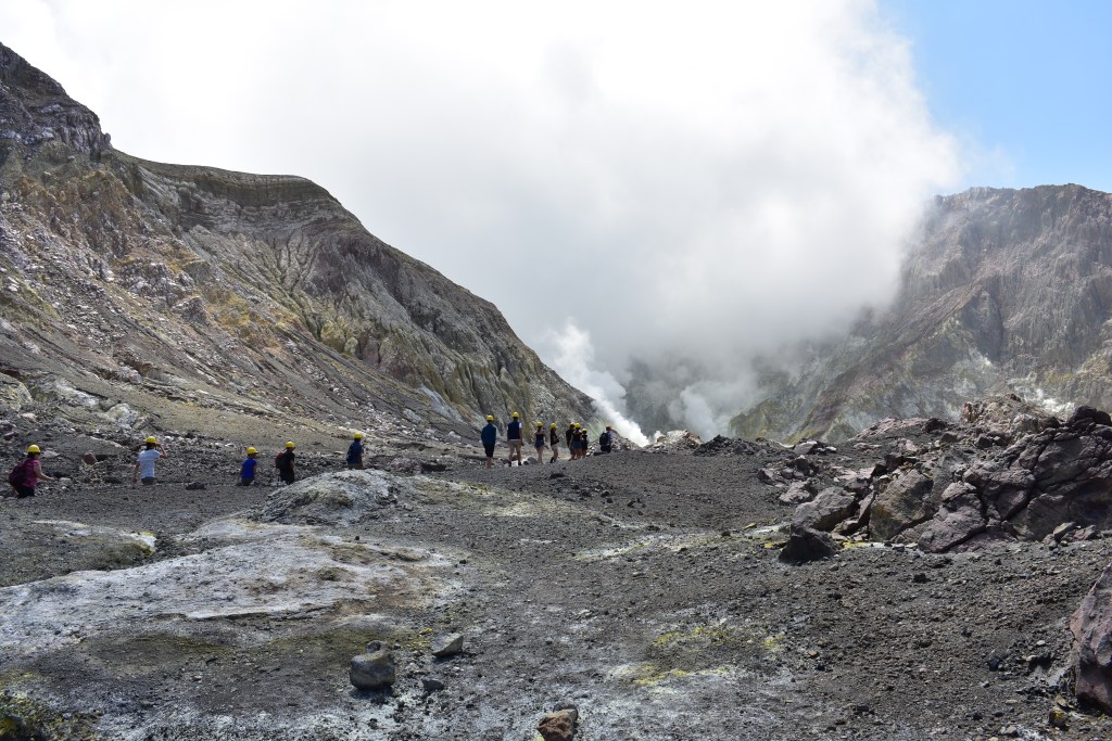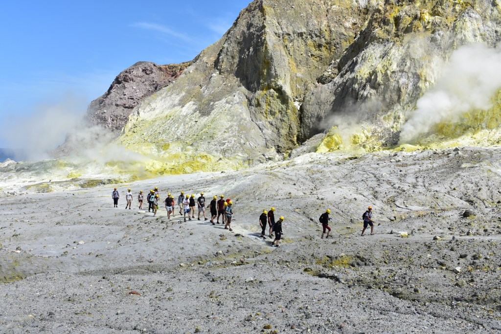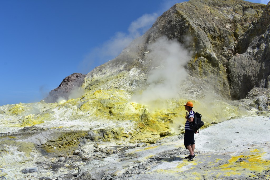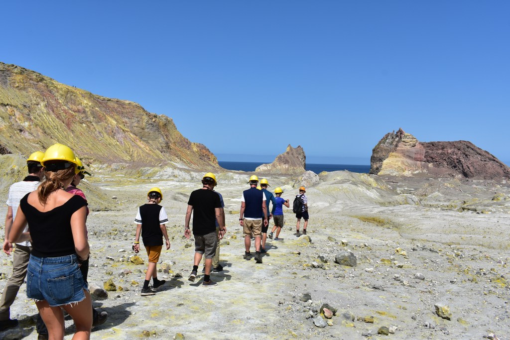 White Island (Whakaari in Maori) is NZ’s only active volcano and is situated 49 kms off the coast of Whakatane. The island is estimated to be between 150,000 and 200,000 years old and originally formed from 3 separate volcanic cones. On checking in for my tour I was told the volcano’s alert level had just recently increased from 1 to 2, meaning it was ‘in a moderate to heightened state of unrest with the potential for eruption hazards and an increased risk to visitors’ and signed a form that I understood the risk involved. Yikes!