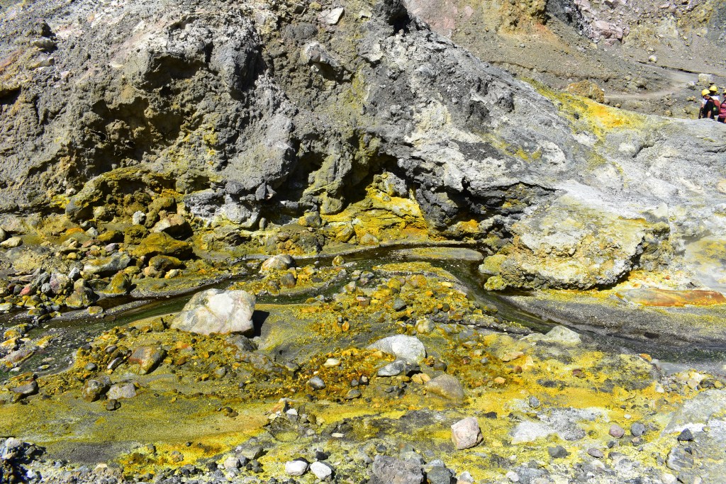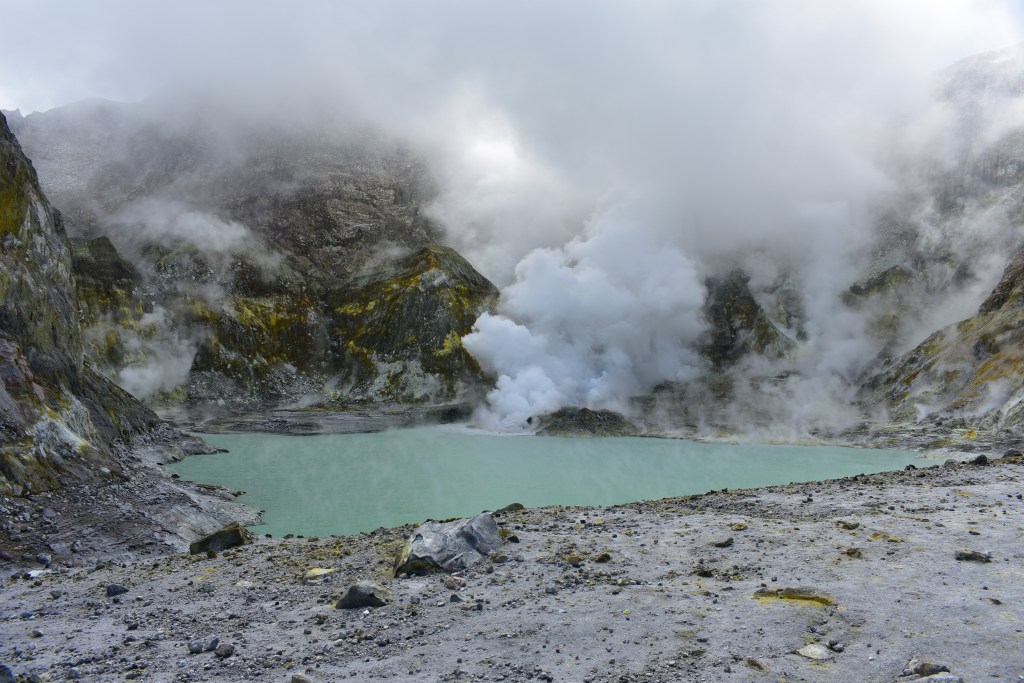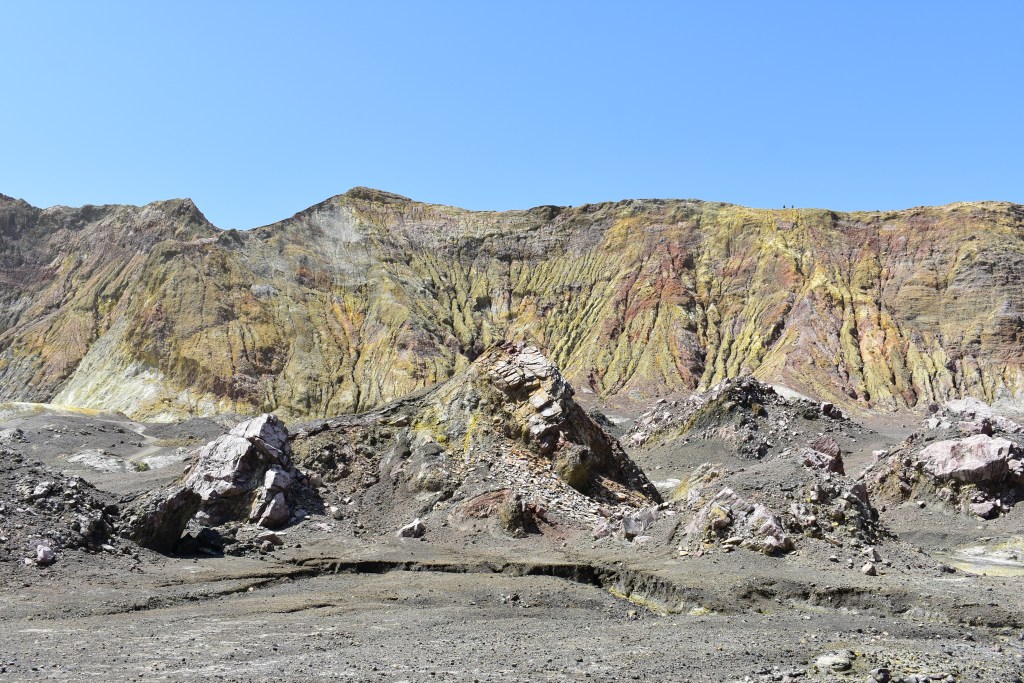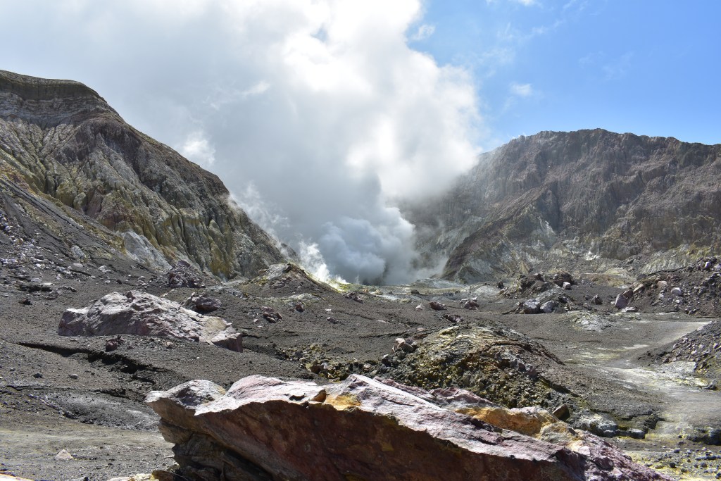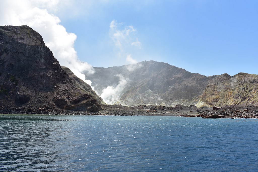 White Island (Whakaari in Maori) is NZ’s only active volcano and is situated 49 kms off the coast of Whakatane. The island is estimated to be between 150,000 and 200,000 years old and originally formed from 3 separate volcanic cones. On checking in for my tour I was told the volcano’s alert level had just recently increased from 1 to 2, meaning it was ‘in a moderate to heightened state of unrest with the potential for eruption hazards and an increased risk to visitors’ and signed a form that I understood the risk involved. Yikes!