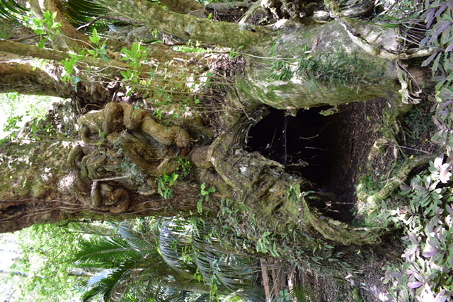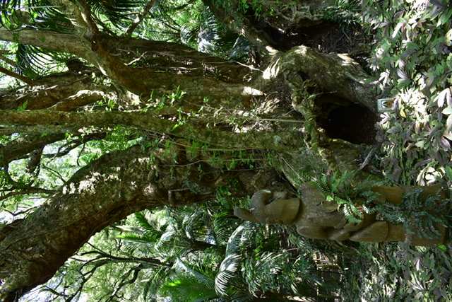 My next stop was Opotiki, just 36km from Ohope going East (as I’m travelling in an easterly direction around the East Cape. I stopped at the i-Site office and was told there was an interesting reserve, Hukutaia Domain, 8km away with a Maori burial tree, one of Opotiki’s main attractions. There was a track which took about 25 minutes to walk around through native bush with some ancient trees, varieties of fern and fungi. Like the Saltmatsh, volunteers care for it. It was set aside as a reserve in 1918 mainly to protect the burial tree. From 1930-1970 Norman Potts, a keen local amateur botanist, travelled throughout NZ to collect plants for Hukutaia whose work was continued through the 1970s to 1990 by Marc Heginbotham.