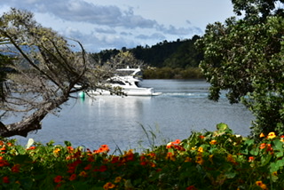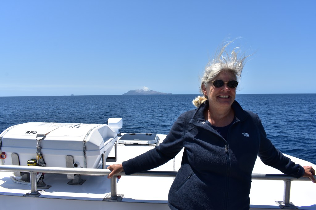 I’d booked a boat trip to White Island starting at 1pm on Saturday 23rd. This had been recommended by a lot of people so I thought I’d better go. It wasn’t cheap but it turned out to be well worth it. While waiting for the boat I had a cup of tea at the tour company’s cafe and noticed a nice man sitting on his own. I smiled at him but decided not to sit near him as he was smoking. While waiting for the boat I sat on a wall near a young woman who was reading avidly and asked her what the book was, which then got us in conversation. Her name was Kim and she was from the Netherlands. Of course her English was perfect. She told me she and her boyfriend (a few years younger than her) were travelling for 5 months, had bought a 7 seater car for $1600, had taken 2 of the seats out and slept in it. I thought this very resourceful but personally didn’t fancy the idea of sleeping in a car. They’d bought curtains and towels from opp shops.