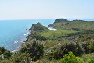 Maria told me about a nice walk at the end of the beach up onto the headland for views of the countryside on one side and the beach the other. It was clear that not many people went up that route judging by the rickety steps and leaf strewn, weedy path but it was worth it: