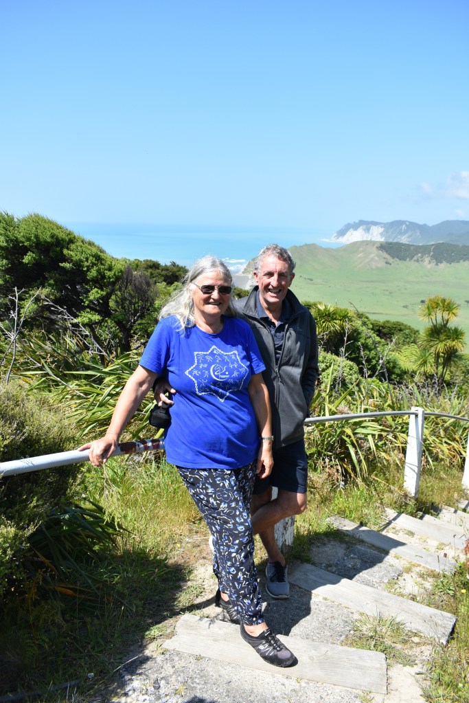 My first stop was to be the East Cape lighthouse, the most easterly point of NZ. Once I got to Te Aurora I took the East Cape Road, 20km of road half of which was unsealed, so quite a bumpy drive. There were one or two houses but this really is as remote as you can get. It’s recommended to walk up the 800 steps to arrive at the top for sunrise, but that would involve camping and a very early start in the dark, but I know some people have done that. By the time I was there it was 10am. The steps were initially very shallow and gradually got steepish but it wasn’t that taxing. Just a few steps from the top I met a lovely Kiwi couple called Lil and John and stood chatting to them for at least 30 minutes. They’d done loads of travelling, mainly backpacking and were currently doing a bit of travelling in NZ with their caravan. They live in Tauranga and offered to put me up, but I declined graciously (I’ve spent a lot of time there) and said I was booked in Rotorua, but said I’d try to meet them for a cup of tea en route to dropping off my hire car.
