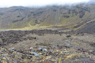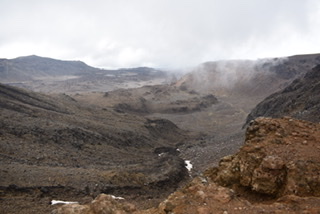 The scenery was much better than I’d expected, in fact it was stunning with initially marshland, then volcanic matter, beautiful red coloured rock (the Red Crater) and the forest. Fantastic views for miles. The weather was pretty cold, in fact I wore 4 layers for most of the time, a hat and gloves. There was quite a wind blowing as well. I later learnt that Search and Rescue have the most call outs in NZ on this walk and specifically after the summit, presumably people being tired and missing their footing. The good thing was that the bus driver had our names for the initial pick up and if by the last bus anyone hadn’t returned by then a search would be initiated.