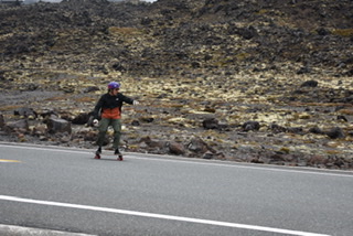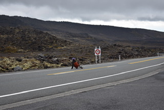 Monday morning I woke late, unusually, probably as a result of yesterday’s exertions. I did do some stretching exercises with an American woman on YouTube (Annie would be impressed) and that really helped my legs i.e. I could walk without difficulty. I faced about on my iPad and then took a drive out to Whakapapa village and to the ski area. You can ride a gondola to the top of Mt Ruapeho, which I’d been told was worth doing, however there was no one about and it clearly wasn’t going. The visibility was pretty poor so I presumed that was why. The ski village was certainly very different to the French/Swiss Alps but then it is a volcano. I stopped to take photos but had been rather spoilt for views yesterday. I marvelled at a man who was skateboarding down a section of the main road, not that there was much traffic but, even so, pretty extreme.
