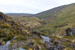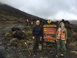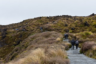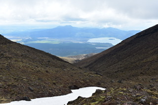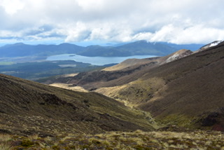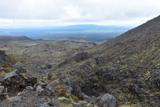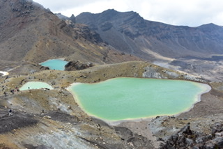 The first climb was mainly up steps, with some short flat sections in between. I’d been dreading the ‘Devil’s Stairway’ but it really wasn’t as bad as I’d thought. The second section before the summit was mainly over rocks and stones. I had my walking poles which made these sections so much easier but there were lots of younger people who were finding it hard work without. Over the top there was a lot of sliding down scree rewarded with views of the Emerald Lakes and then one large lake called Blue Lake. These are considered sacred to the Maori people and the water is not to be touched nor stones thrown into it. The final descent seemed to go on for ever down steps and along board walks, winding round and down (a bit monotonous really but I still enjoyed it) until it ended up in forest and eventually led to the car park at Ketetahi Road. I’d jogged and walked fast through the forest section to try and make the 3pm shuttle bus (the next one being at 4.30pm) and just made it!