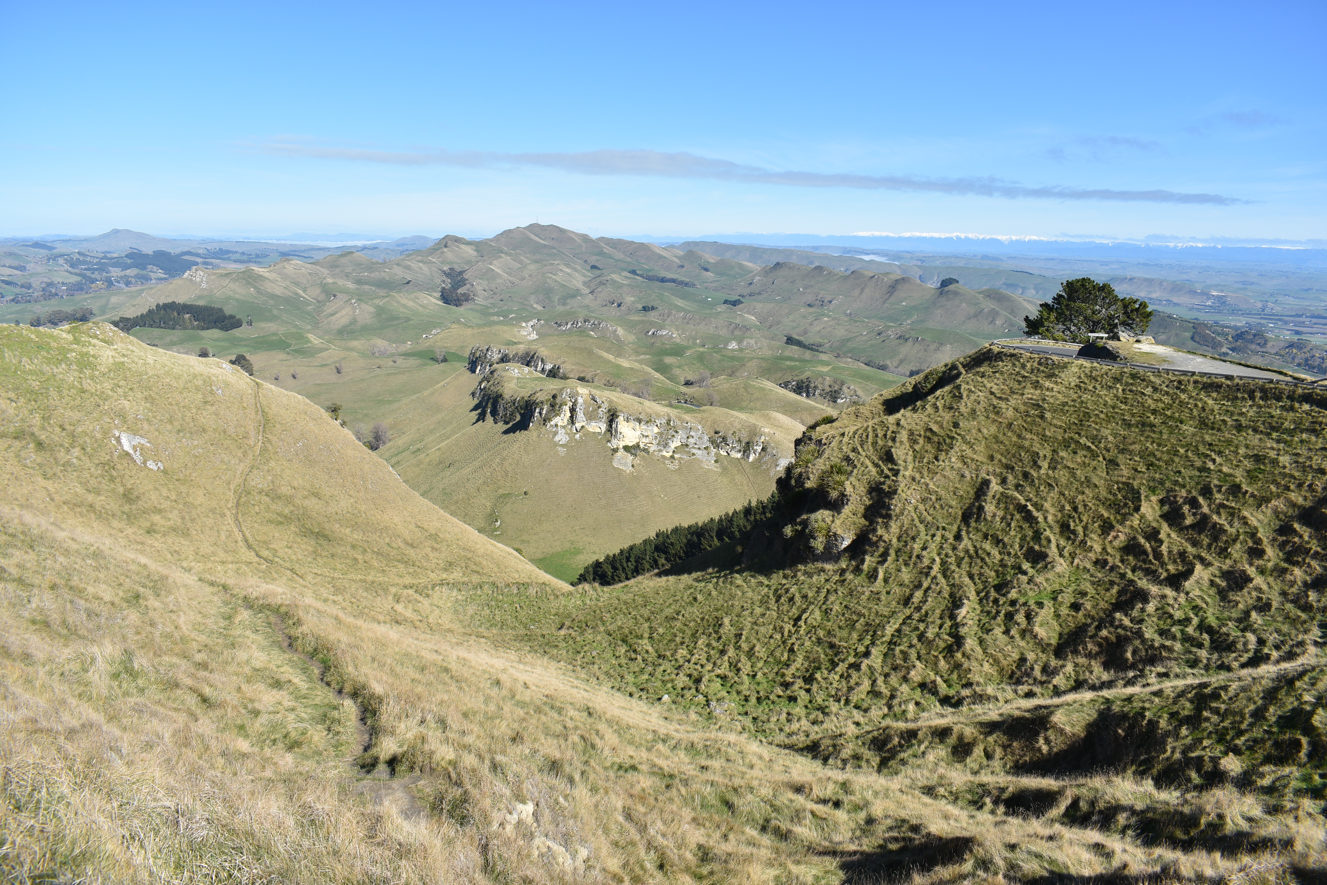 Peter had been offering us lifts to wherever we’d like to go but we’d both refused, preferring to either walk or cycle. However, we accepted a lift to Te Mata Peak the next day. I hadn’t heard of it so was glad Peter had mentioned it. It was a lovely journey up the peak on a windy road with fantastic views all around at the top. Like so many places in NZ it’s steeped in Maori legend. There were some very fit cyclists cycling up, and the area has a lot of walking tracks which we didn’t have time for as were dropping Olivia off on the main road to hitchhike her way to her next destination.